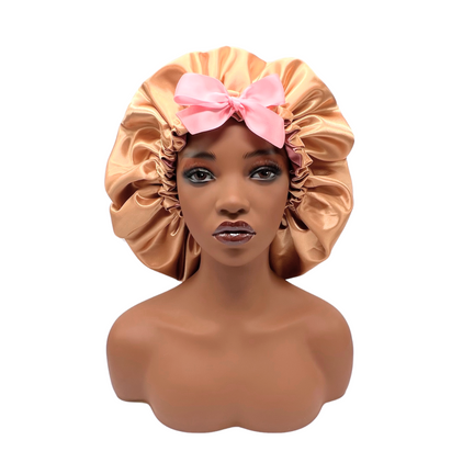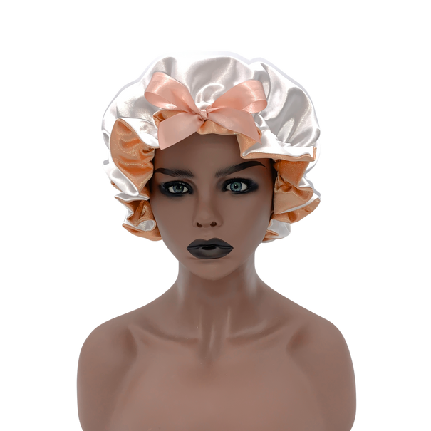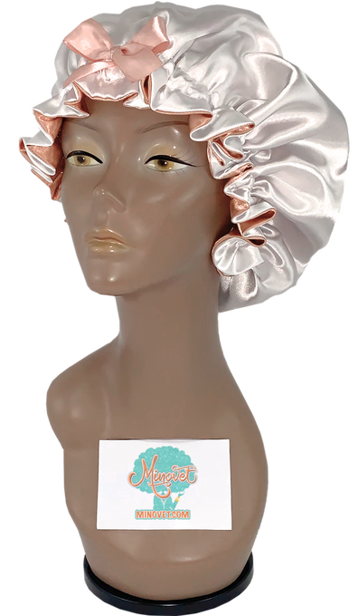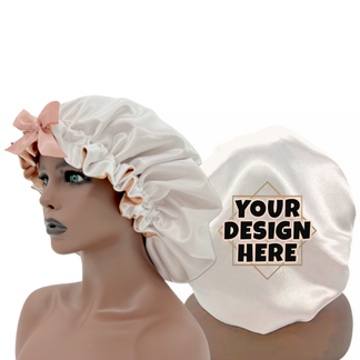 Customizable satin bonnet with adjustable satin ribbon. Add a logo or all-over print. Handmade with love in the USA.