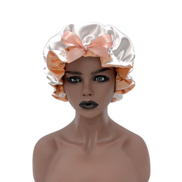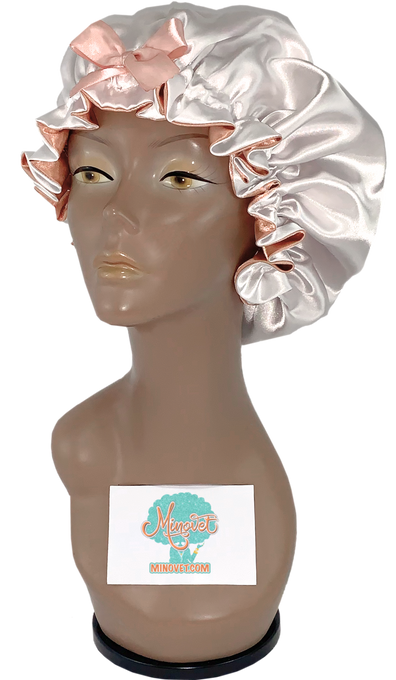 Customizable satin bonnet with adjustable satin ribbon. Add a logo or all-over print. Handmade with love in the USA.